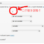 この値がデフォルトで「5」になっていますが、5だとなかなか関連エントリーを引っ張って来れないみたいです。